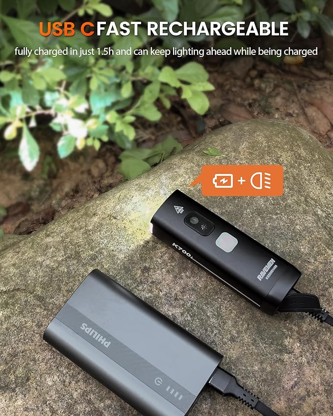 RAVEMEN K700 LED Bike Light Under Mounted Bicycle Light with Auto Off 4+1 Smart Daytime Riding Mode, IPX7 Rechargeable Bike Headlight for Day Night Riding Urban Cyclists
